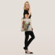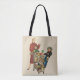 Retro familj, mamma och barn mataffärskorg tygkasse
