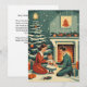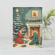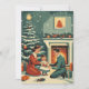 Retro Familjejul vid brasan Julkort