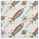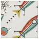 Min ursprungliga vektorillustration av retroatomraketer, mättnad, stjärnor och atomer. i akvarium, orange-rött, guld och svart på en texturerad bakgrund, vita, nyanser av grått och tan.