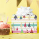 Modernt, retro, färgglat rosa och blått julpapper med unikt pop-art granmönster.