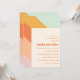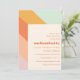 Denna inbjudan till baby shower har djärva diagonala färgränder i mint, gul, orange, korall och rosa som löper ner på vänster sida med alla festsdetaljer i retro fetstil på en mjuk krämfärgad bakgrund. Rolig, färgglad och modern – fungerar lika bra för en baby sprinkle eller en full shower.