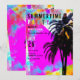 Retro färgrik strandfest med palmer inbjudningar