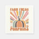 Denna pulserande och återinspirerade falldesign framhäver frasen "Farm Fresh Pumpkins" i fet, lekfull typografi som omedelbart uppmärksammas. I mitten av konstruktionen finns en stor, stiliserad pumpdocka, skild från varma automatiska nyanser av orange, brun och grädde. Pumpan är framtill en dynamisk sprängning av färgstarka strålar som sträcker sig utåt, med en palett med muterade orangar, nyp, och gröntar som ger konstruktionen en nostalgisk vintage. Kombinationen av solsprängningen mönster och det kniviga, fuktiga typsnittet ge är en roligt och en energisk vibe, en perfekt för att fånga den festiva andan av fall.