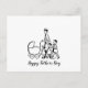 En svart och vit reflexbild av en far som går med sina barn och trycker på en baby-bugg. Hälsning: Lycklig Fars dag. Bild från 1940 års Vintage Printers Bok (utan upphovsrätt).