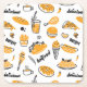 Retro Fast Food Hand plockade Sketch Mönster Underlägg Papper Kvadrat