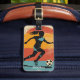 A vibrant illustration of a female soccer player in motion, designed with bold vintage-inspired colors and dynamic energy. This striking artwork celebrates athleticism, teamwork, and confidence, making it a perfect choice for sports enthusiasts, athletes, or anyone who appreciates retro-style sports art with a modern touch.