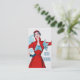 Vintageillustration av en kvinna som modellerar en klänning från det mitt- 20th århundradet. Rött med 3/4 s; eeves och en åtsittande midja. En lue och en vit görad randig bodice ger en väderkorn.