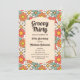 Grön, orange, persika och röd retro groovy blomster sömlös mönster Födelsedagsinbjudan. Denna roliga och livfulla design är perfekt för alla som vill lägga till en touch av retro till sin speciella dag. Med sina djärva färger och groovy blomster mönster är denna inbjudan säker på att sätta tonen för en minnesvärd fest.