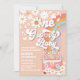 Fira ditt lilla barns milstolpe med denna groovy retro-inbjudan till ettårsfest! Med en fantasifull pastelldesign med regnbågar, fredstecken, tusenskönor, fjärilar och en blommig skåpbil ger detta kort fred, kärlek och kul till din fest. De lekfulla teckensnitten och de livfulla färgerna fångar en 1960-talsinspirerad vibe, perfekt för en unik och minnesvärd firande. Anpassa enkelt för ditt barns speciella dag och skapa tonen för en glad, hippie-inspirerad födelsedagsfest.