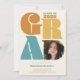 Gradering 2023? Gå stort eller gå hem med våra djärva och överdimensionerade typografinbjudningar! Med ett överdimensionerat Grad-teckensnitt (allt färg är redigerbart) med ett foto i D, och lägg till ytterligare tre foton i baksidan med ett fet överdimensionerat 2023. Med retro terracotta, blått, orange och gult.