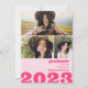 Gradering 2023? Gå stort eller gå hem med våra djärva och överdimensionerade typografinbjudningar! Med ett överdimensionerat Grad-teckensnitt (allt färg är redigerbart) med ett foto i D, och lägg till ytterligare tre foton i baksidan med ett fet överdimensionerat 2023. Med neon- och pastellreflektion rosa.