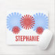 Roligt och funky Retro Fireworks Mousepad med fet och unik fyrverkerigrafik i rött och ljusblått. Den här funkyns coola-muspekare tillför lite patriotisk luft till vilken arbetsyta som helst! Anpassa med namn eller annan text.