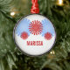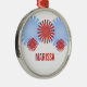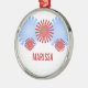 Roligt och funky Retro Fireworks Premium Round Ornament med fet och unik fyrverkerigrafik i rött och ljusblått. Den här coolans dekoration skulle göra en underbar keepy eller dekoration när du anpassar dig efter den text du väljer!