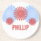 Roligt och funky Retro Fireworks Underlägg med fet och unik fyrverkerigrafik i rött och ljusblått. Den här coolan i funkyn underlägg lite patriotiskt fläkt och skyddar dina möbler! Anpassa med namn eller annan text.