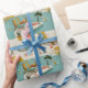 Wrapping Paper - Vintage-inspired poolside scene with pink flamingos, lounge chairs, cocktails, and sunny vibes in a retro summer aesthetic. Ideal for beach lovers, vacation fans, and those who enjoy fun, nostalgic designs.
