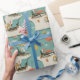 Wrapping Paper - Vintage-inspired poolside scene with pink flamingos, lounge chairs, cocktails, and sunny vibes in a retro summer aesthetic. Ideal for beach lovers, vacation fans, and those who enjoy fun, nostalgic designs.