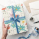 Wrapping Paper - Vintage-inspired poolside scene with pink flamingos, lounge chairs, cocktails, and sunny vibes in a retro summer aesthetic. Ideal for beach lovers, vacation fans, and those who enjoy fun, nostalgic designs.
