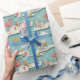 Wrapping Paper - Vintage-inspired poolside scene with pink flamingos, lounge chairs, cocktails, and sunny vibes in a retro summer aesthetic. Ideal for beach lovers, vacation fans, and those who enjoy fun, nostalgic designs.
