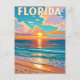 Retro Florida Beach: Illustrated Sunset Getaway Vykort