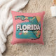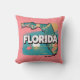 Retro och snyggt dekorativ kudde har Florida vignette avslutad med flamingo och statsilhuette