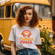 Retro Flower Power T-shirt. © Tees & Sweats på Zazzle. Denna retrodesign med en regnbåge och blommor och texten Flower Power påminner om hippiekulturen från 70-talet.