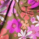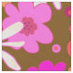 Craft and sewing fabric with big, retro flowers design. Hand drawn, fun floral pattern includes shades of pink, orange and off-white on a golden brown background. Easily change the background color to suit your needs.