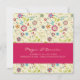 "Retro Flowers" spara datum meddelande. 5,25" x 5,25" platta kort med kuvert. Anpassa detta levande och lekfulla sätt att spara datumkortet med ditt namn och bröllop-datum för att informera vänner och familj om dina bröllop-planer.