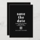 Modern stil bröllop spara datum har en enkel och minimal layout med namn i ett färgåterbildsteckensnitt. Nedan finns din händelseinformation i ett sans serif-teckensnitt tillsammans med din QR-kod (valfritt) för gäster som ska söka igenom och gå till webbplatsen för ytterligare information. Färg-schemat är svart med vita bokstäver. QR-koden kan tas bort och typsnitt / färg kan ändras i designredigeringsverktyget för verktyg.