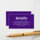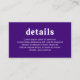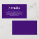 Kort för moderna höljen i stil bröllop med en enkel och minimal layout med sidhuvudet i ett upphöjt typsnitt. Det ljusa färg-systemet är en lila för royal av juvelton. Typsnitt / färg kan ändras i designredigeringsverktyget i verktyg.