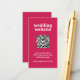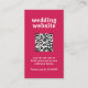 Kortet för det moderna bröllop-höljet i stil har en enkel och minimal layout med rubriken "bröllop webbplats" i ett upphöjt retro-teckensnitt. Nedan visas din händelseinformation i ett sans serif-teckensnitt tillsammans med din QR-kod (valfritt) för gäster som söker igenom och enkelt kan OSA online. Det ljusa färg-systemet är en levande Viva-Magentans rosa. QR-koden kan tas bort och typsnitt / färg kan ändras i designredigeringsverktyget för verktyg.