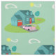 Detta det Retro förorts- huset kammade mönster för bomullstyg presenterar ett typisk amerikanhem i en typisk amerikangrannskap, circa 1950. Ett krickahem med en påfågelblått taklägger, och turkosfönster är perfekt offset- vid en vibrerande röd ytterdörr och parkera bilen i garage dörren. En klassikerrosa, finned konvertibel bil för 50-tal parkeras på den pittoreska körbanan. Den Kitschy, plast- rosa flamingoslooken på bumerangen formar rätt hemma av nytt mejat grönt gräs som vilar på en jadebakgrund. Den manicured gräsmatta landskap med nyckfulla träd. Den formade njurebönan fördunklar, och en gul sunburst av en sol l5At dig veta den är precis en annan härlig dag i modern förorterna för mitt- århundrade.