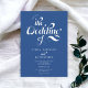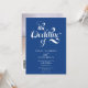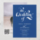 När återtro möter modern beröring. En vit och blå inbjudan till ett reflexskript med kalligrafi av klassisk och elegant vintage i klassisk elegant, vit och blå. Lägg till ditt par i baksidan (eller ta bort det om du inte vill ha några foton) och lägg till din QR-kod för osa, information och gör inbjudan till ett överkomligt pris i en bröllopsinbjudan.