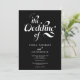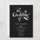 När återtro möter modern beröring. En vit och svart inbjudan till ett reflektorskript med en kalligrafi av vintagen klassisk och elegant i vit och svart elegant. Lägg till ditt par i baksidan (eller ta bort det om du inte vill ha några foton) och lägg till din QR-kod för osa, information och gör inbjudan till ett överkomligt pris i en bröllopsinbjudan.