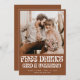 Terracotta retro inspirerade 70:s typsnitt stil sparar datumet för det roligt-älskande paret som inte kan vänta med att fira med sin familj och sina vänner. Typografi med ditt foto som lyder: Fri dryck och bröllop! Anpassa med ditt foto-, namn- och bröllop-datum.