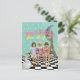 Rolig och funkig förändrad konst vignettskisser med en trio skolbrudar vintage-färgade fotoklipput, en anka med krona, Eiffeltornet, en halvmåne och "Grattis på födelsedagen från oss alla" i rosa och gul neontext