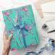 Den här rosan Santa Flamingo håller sitt strumpor och pojken är det Long - roligt retro Flamingo-julomslaget pappert.