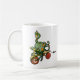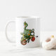 Roligt kaffe mugg med en illustration av en bläckfisk som kör en trehjuling medan man håller flaska i öl. Det är en mycket roligt gåva till bläckfisk älskare, öl älskare, cyklister med mera! Vilken underbar Valentindagspresent eller Fars dag-gåva! Illustrerad av Patricia Alvarez.