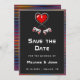 Överraska dina gäster med den här roligten Spara datumkorten med romantisk spelbild. Lägg enkelt till informationen genom att klicka på alternativet "Anpassa den här mallen".
