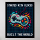 Retro Gamer Design For Men Started With Blocks Bui Poster