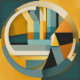 Retro Geometric Abstraction Circles and Rectangles. Gör ett fet påstående i ditt space med den här fängslande abstrakten som inspirerats av Bauhaus-designen. Det är cirklar, kurvor och rektanglar i vibrerande färg av gult, brunt teal, svart och blå som ger dig en aning elegans.