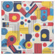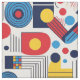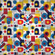 Retro Geometric Abstrakt Pat#10 Navy Red ID1067 Tyg