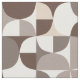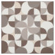 En retromedeltida inspirerad utformning som har en abstrakt mönster av geometriskt kurvor i ört brunt, ben, sandsten och vitt.