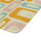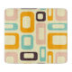 Retro geometric pattern with overlapping rectangles and ovals in orange, teal, pink, and brown on a light beige background, creating a playful, vibrant mood.