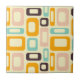 Retro geometric pattern with overlapping rectangles and ovals in orange, teal, pink, and brown on a light beige background, creating a playful, vibrant mood.