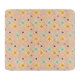 Retro geometric pattern with teal, orange, and black star-shaped diamonds on a peach background. The design conveys a playful, vintage feel.