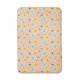 Retro geometriskt mönster med teal, orange och svarta stjärnformade diamanter på en persikofärgad bakgrund. Designen förmedlar en lekfull, vintagekänsla.