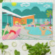 Denna Retro glada design för bassängpartykökshandduken presenterar fyra hunky muskelknuttar som har en glad gammal tid, som de slår Palmet Spring värmer, genom att vara slö runt om turkosblåttvatten av deras den atom- bumerangen formade simbassäng. Den moderna arkitekturen för det mitt- århundradet på det sagolika orange stenhuset är klart den främsta fastigheten som ges beskåda av bergen i bakgrunden. Sken för en gultstarburstsol ljust i turkoshimmlen så dig är kompetent att se varje charma specificera--från de kitschy rosa flamingosna till 50-tal görade randig, breezy kvarter fäktar. Och naturligtvis skulle vilket Palm Spring hus är färdigt utan en palmträd?