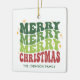 Fira julhelgen med denna charmerande, personlig julprydnad som blandar klassiskt stil med modern anpassning. Med den vackra frasen "Merry Merry God jul" som återges i en traditionell röd palett och grönt färg, kommer den här prydnaden att lägga till en gnutta nostalgi till din helgdag décor. Anpassa den här designen med ett namn, ett speciellt meddelande eller valfri text plus ett foto för att skapa en gåva av ett slag för vem som helst på din inköpslista.
