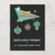 En färgrik retro God Jul-billboarddesign med tre julgranskulor som hänger från skylten. Lägg till din personliga julhälsning på baksidan av vykortet och skicka det till dina vänner och familj.