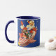 Detta presenterar den snazzy julen som dricker muggen, en vintageillustration av jultomten som levererar leksaker i hans bandgodisraket. Den perfekta roliga muggen för fläktar av Santa och alla retro saker!